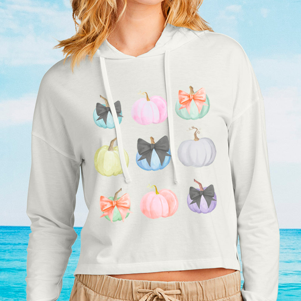 Pumpkins and Bows Long Sleeve Crop Hoodie T-shirt